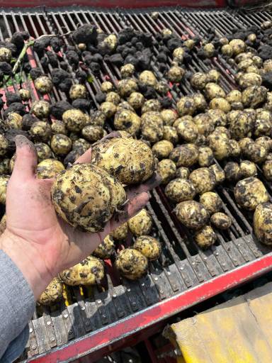 First digs and not a bad result. By the middle of the month we will accelerate to the maximum! Technology and people at work! We dig while the weather permits. Harvest of young potatoes is in full swing. There is no exact yield data yet, the yields are excellent!